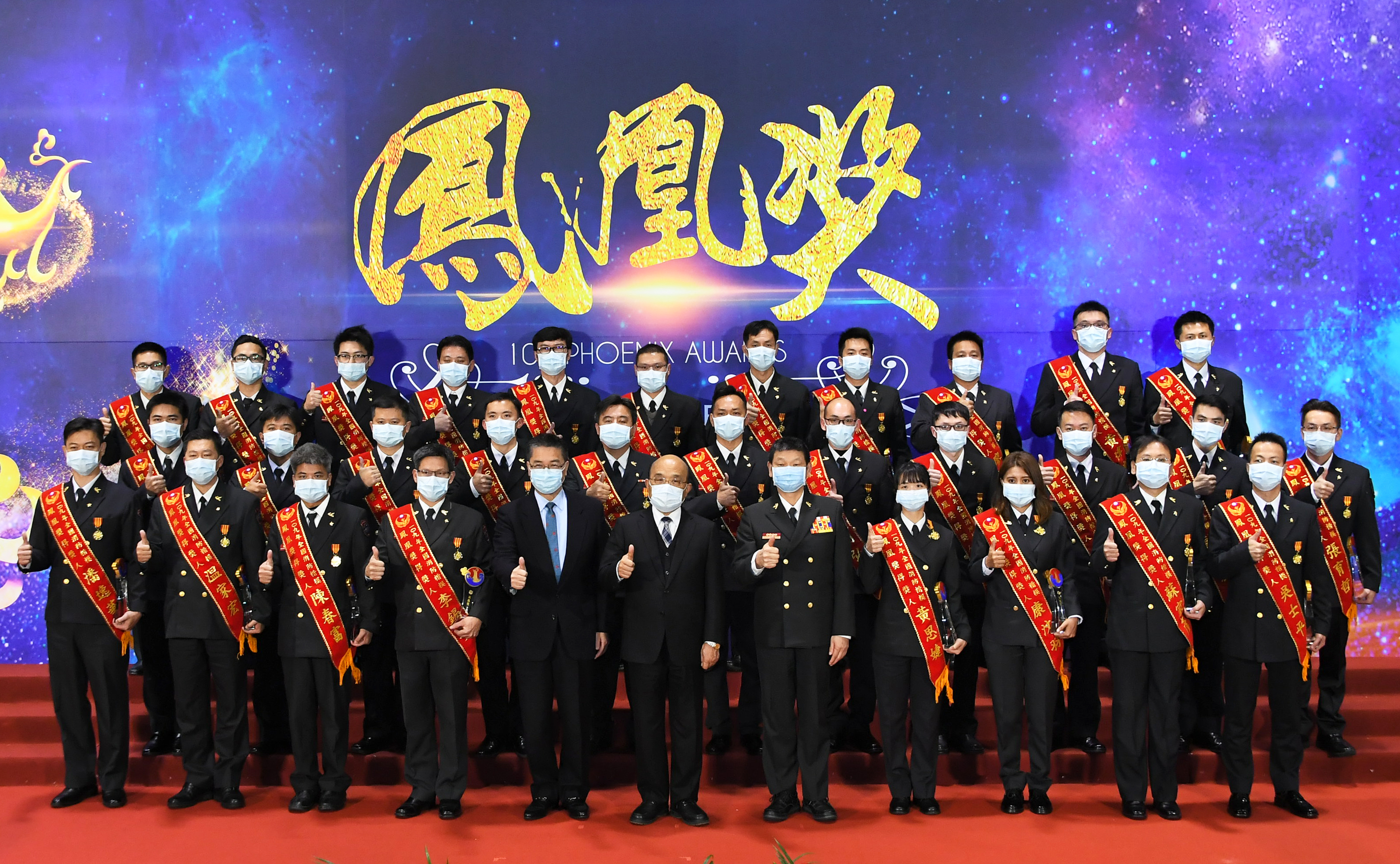 行政院長蘇貞昌今(19)日出席內政部「109年鳳凰獎楷模表揚典禮」時表示,今天是消防節,政府代表國人向全國消防、義消、防火宣導志工、救護志工及災害防救志工表示最高的肯定和感謝。政府以全國的力量支持消防人員,並盼獲獎楷模能激勵後進,共同堅守崗位,讓臺灣平安,讓國人安和樂利。