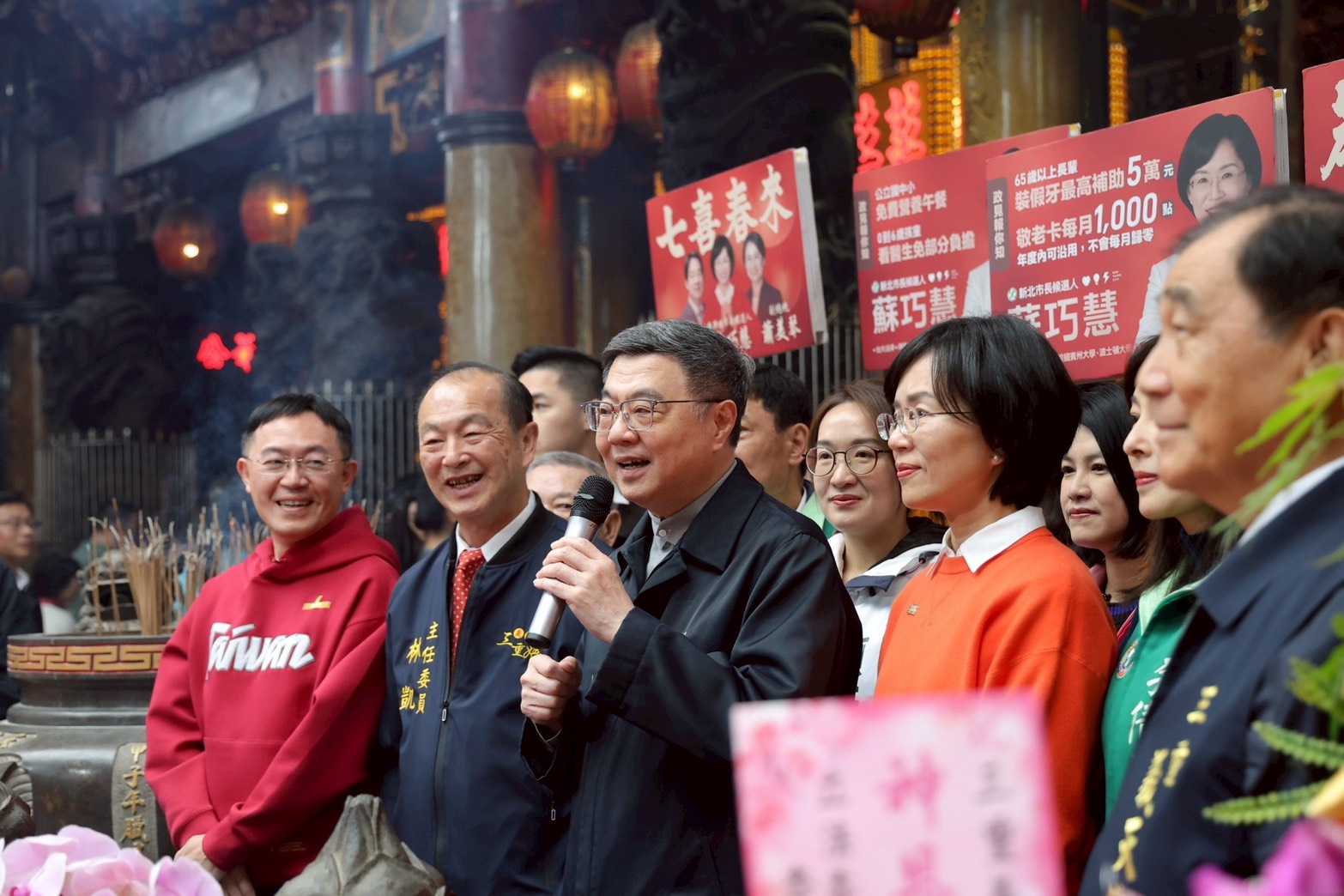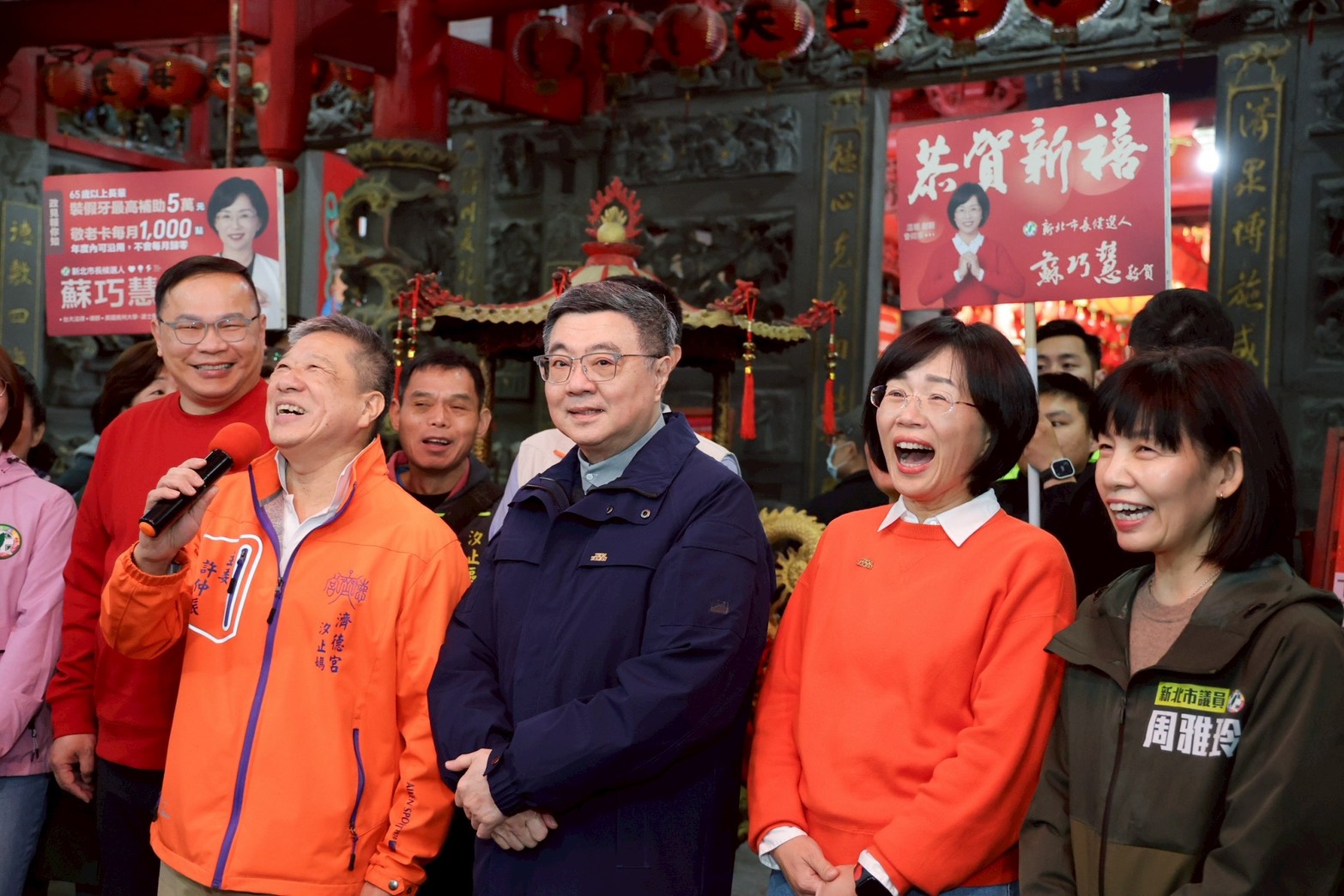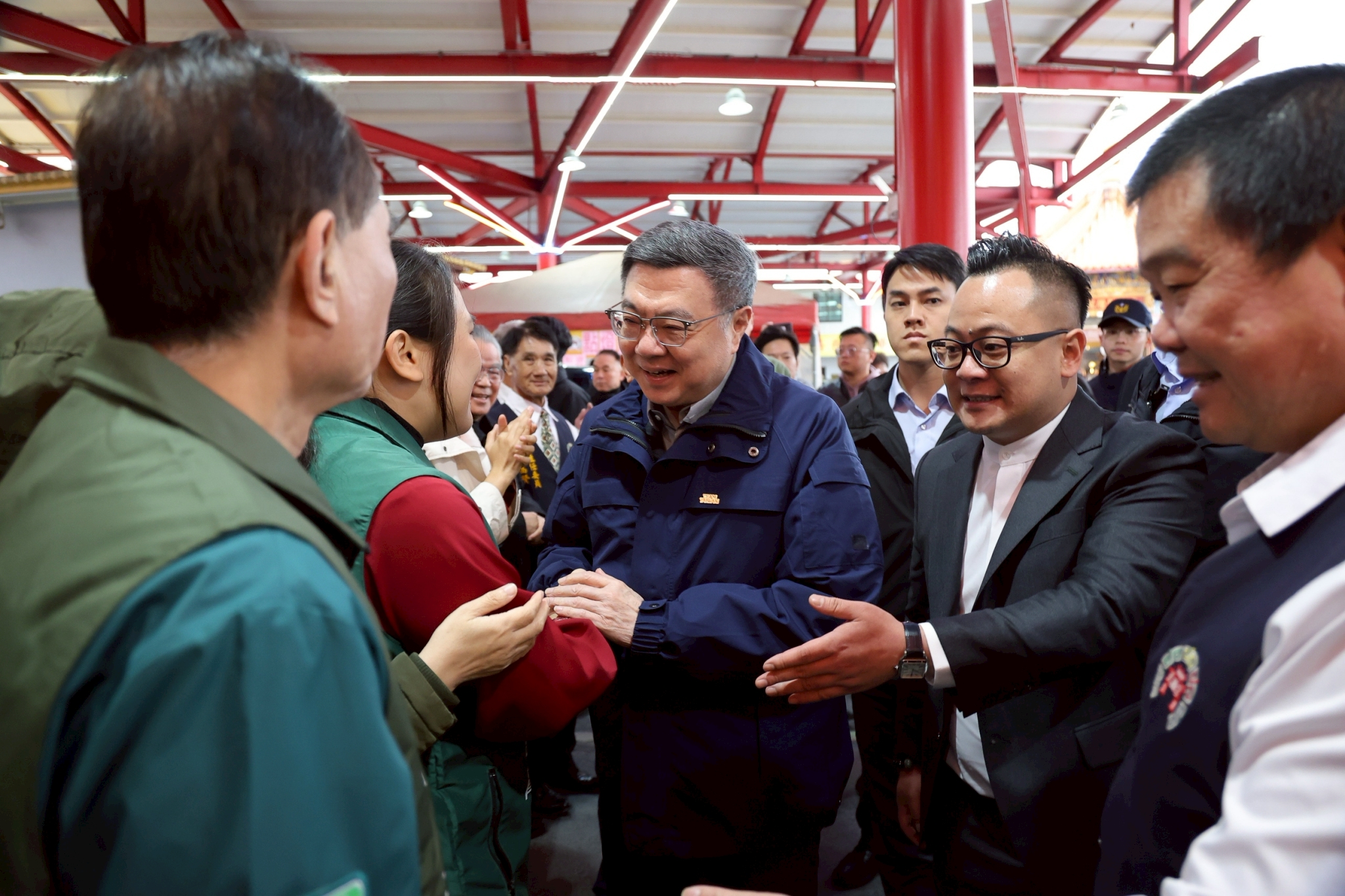 今(18)日為農曆大年初二,行政院長卓榮泰下午偕同李慧芝發言人分別前往新北市汐止濟德宮及三重義天宮參拜祈福,祈求國家風調雨順、國泰民安,並發送總統賀歲福袋向在場鄉親拜年,祝福大家新年快樂,現場湧入許多......【詳全文】