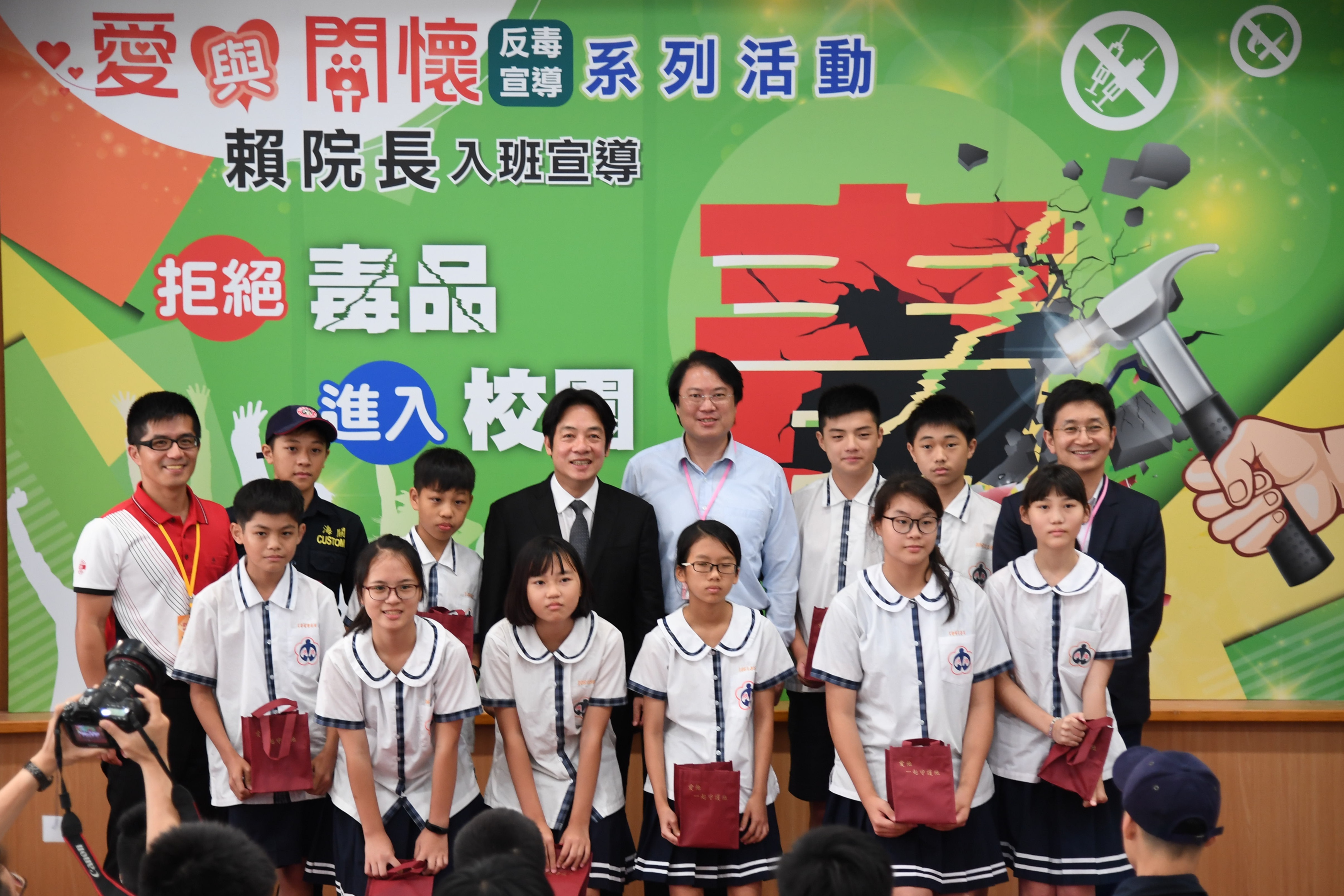 行政院長賴清德今(22)日出席「愛與關懷」反毒宣導系列活動,赴基隆市建德國中以授課方式向同學談話,提醒青年學子勿出入不當場所,避免結交不良朋友,更強調如有吸毒同學要通報,以利師長協助戒除毒癮。 &n......【詳全文】