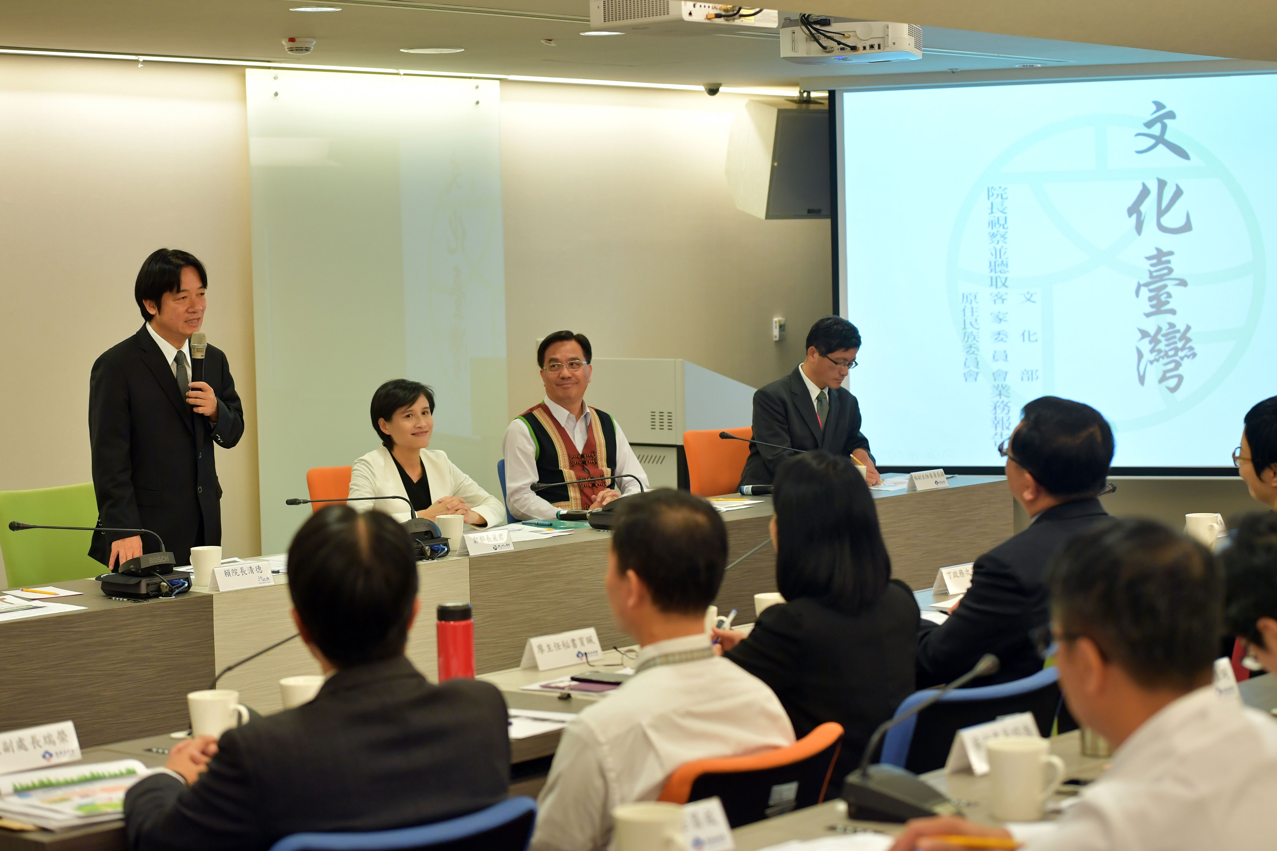 行政院長賴清德今(23)日下午視察並聽取文化部、原民會與客委會業務報告。賴院長表示,此行目的在向社會宣示,新內閣重視經濟發展也重視文化建設,因此施政報告中除有6項具體措施發展經濟外,也有5項國家發展目......【詳全文】