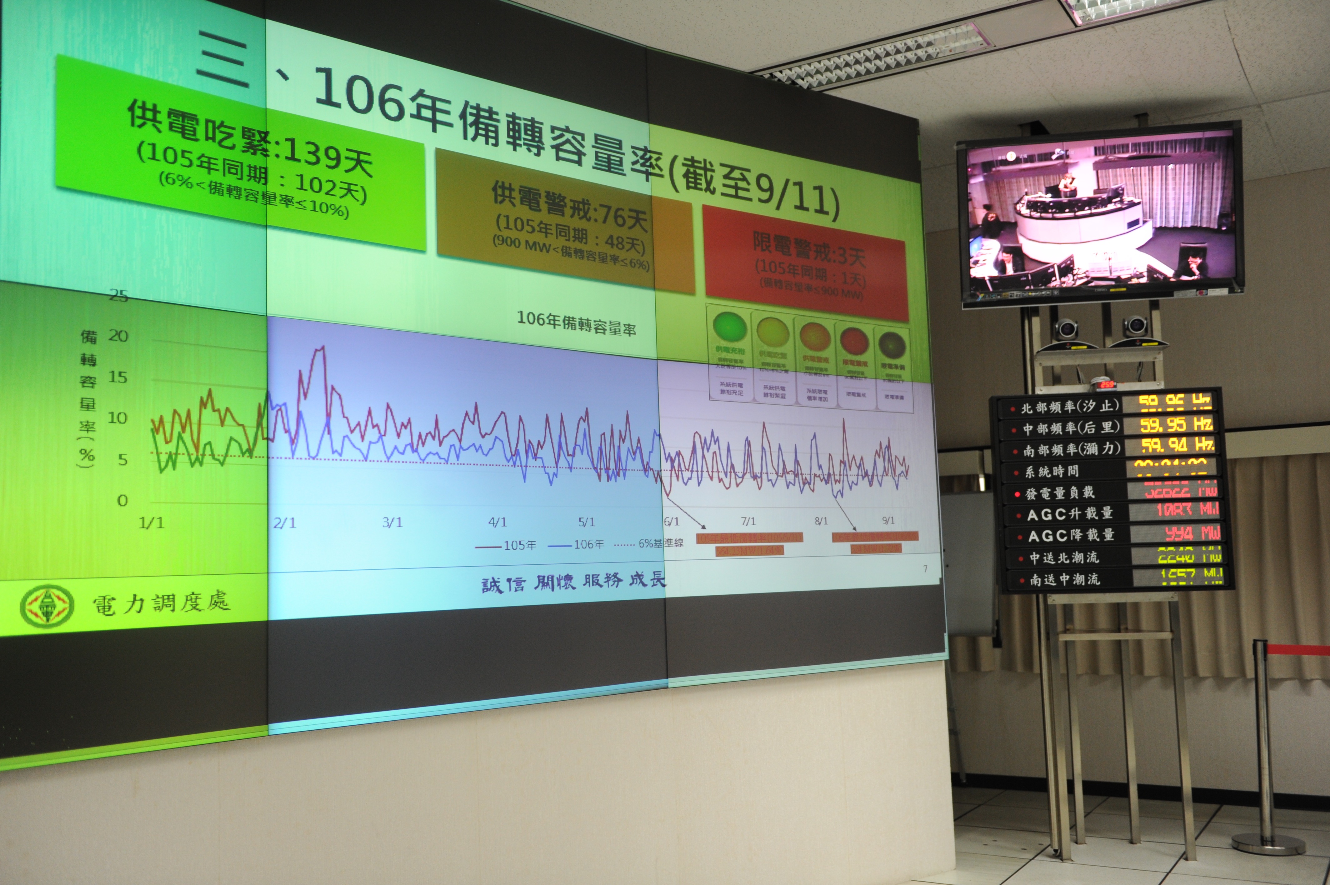 地點:台電大樓(台北市羅斯福路3段242號)視察26F調度中心,因場地限制,由行政院統一供帶及照片,其餘則開放拍攝。