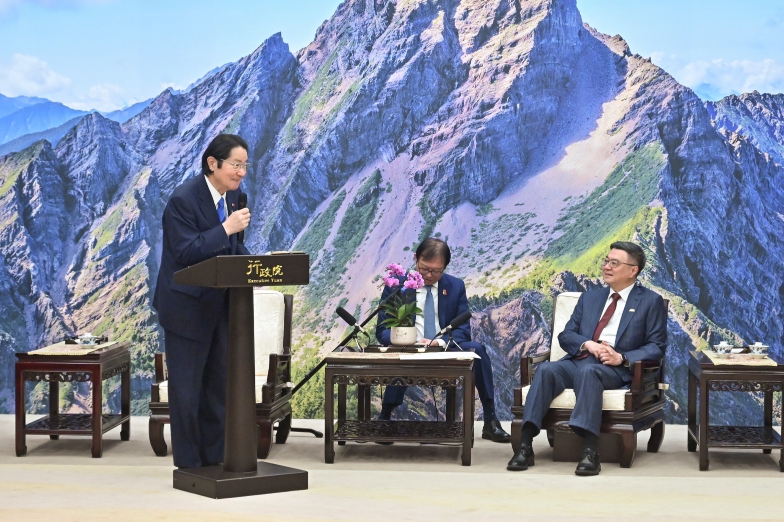 地點:行政院玉山廳1、各媒體限1名文字記者入場,影像採「共訊」方式辦理,已協調SNG聯誼會共訊(網址當日提供)。 2、開放媒體至訪賓致詞結束。 3、欲採訪媒體,請由本院北平東路門口進入院區,並於15:55前至本院記者室集合,由新傳處統一引導進入玉山廳。
