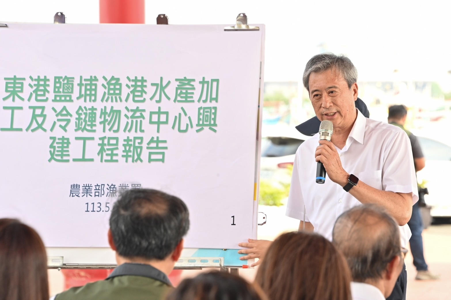 地點:苗栗縣竹南鎮龍鳳漁港海堤觀景平台(Google座標:24.701162, 120.856171)1、欲採訪之媒體,請於報到處換證入場。 2、本行程開放至大合影結束,現地視察部分因空間限制,不開放媒體採訪,由本院新傳處提供影音及照片。