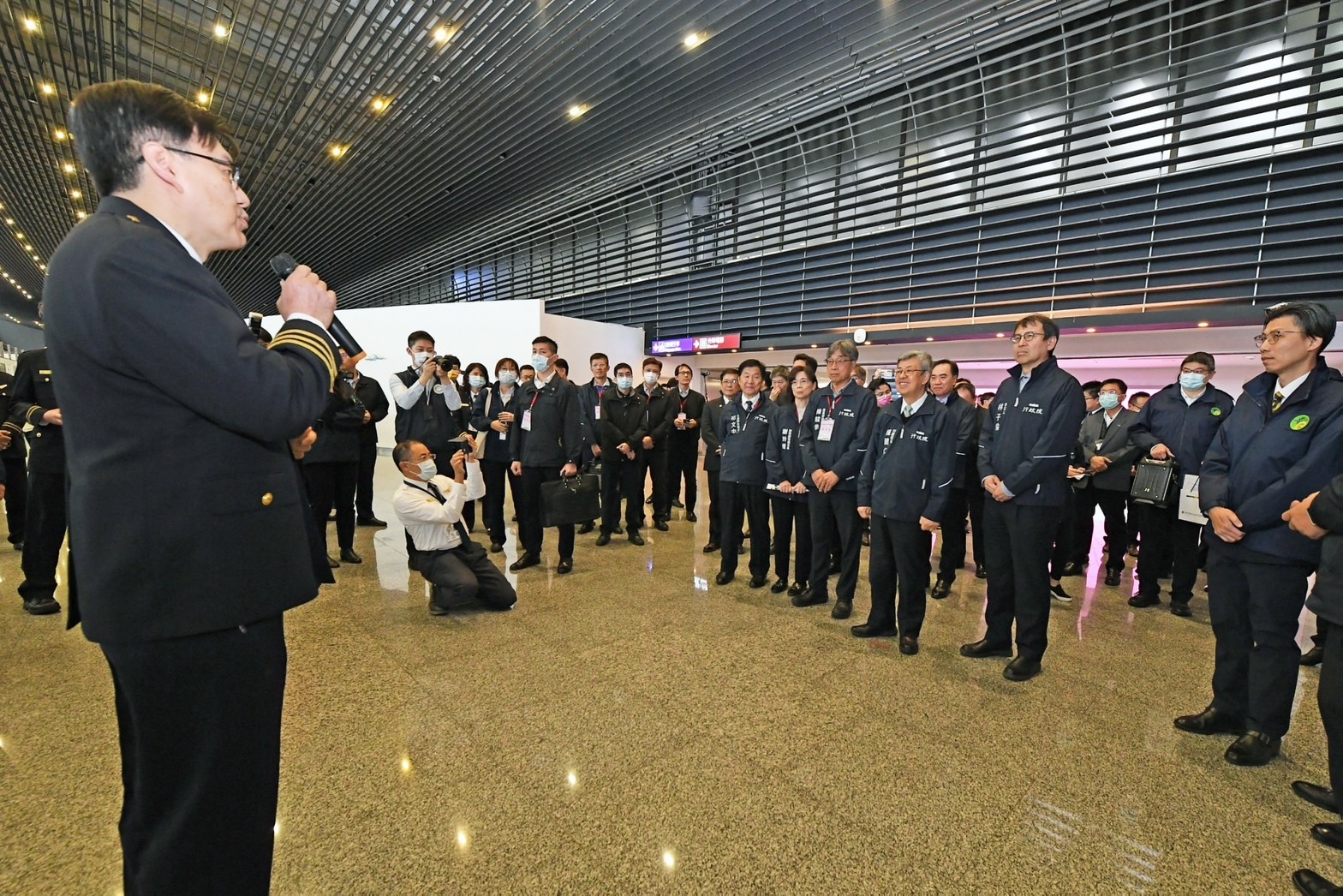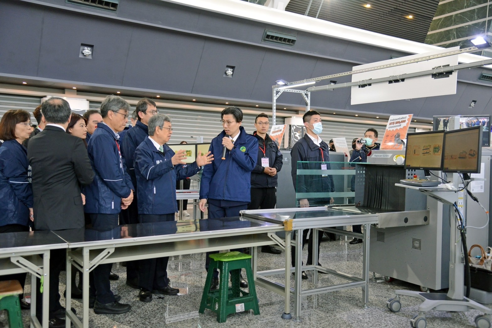 地點:桃園機場第一航廈入境大廳北側航警管制哨(桃園市大園區航站南路15號)本行程考量場地為機場管制區,僅開放持有機場通行證之媒體進入拍攝。後續視察華儲部分,不開放媒體採訪,由本院新傳處提供影音及照片。