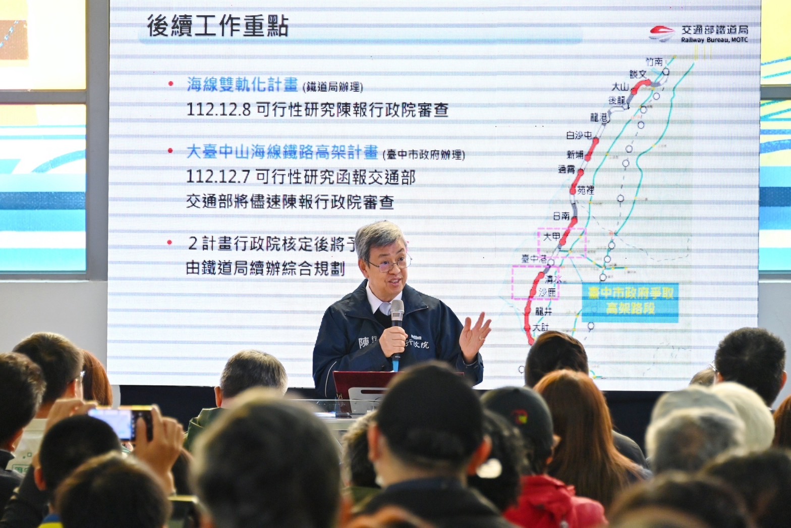 行政院長陳建仁今(21)日赴臺中沙鹿火車站視察「臺中海線鐵路雙軌化」規劃辦理情形時表示,政府規劃投入近162億元預算,將臺鐵「苗栗談文站」至「臺中追分站」間的單軌路段提升為雙軌,未來配合適時增開海線班......【詳全文】