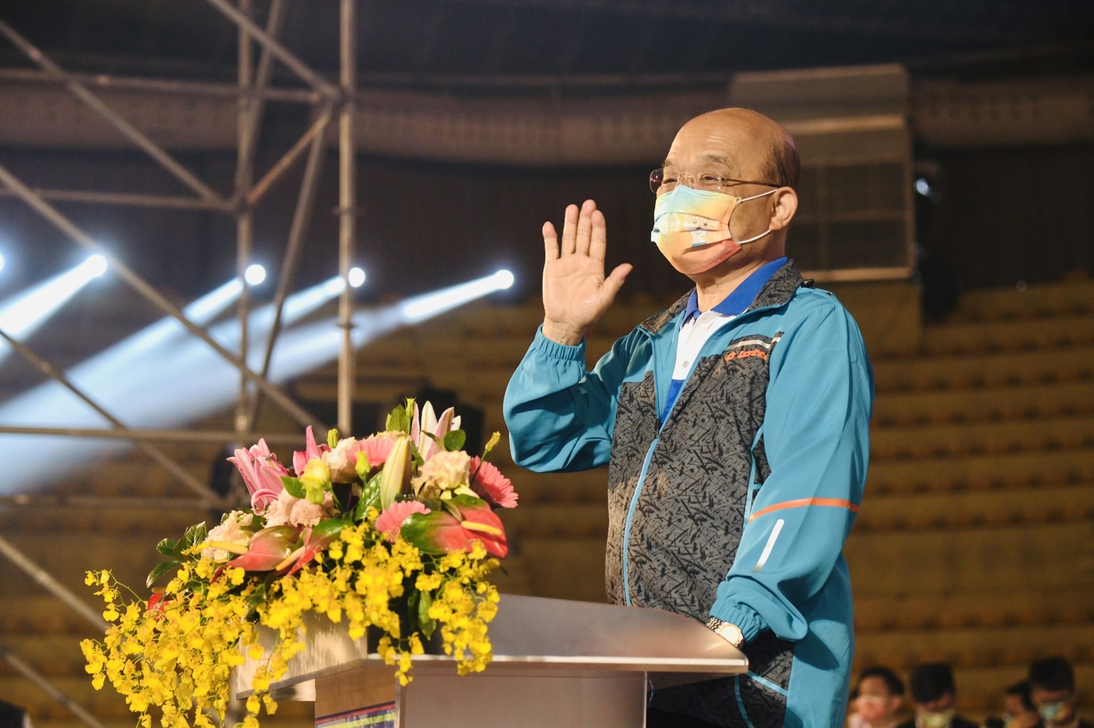 地點:國立臺灣體育運動大學體育館(臺中市北區雙十路一段16號)防疫考量,本行程採「共訊」方式辦理,已協調SNG聯誼會共訊,並由新傳處提供照片。配合防疫,媒體朋友請全程佩戴口罩並保持社交距離。
