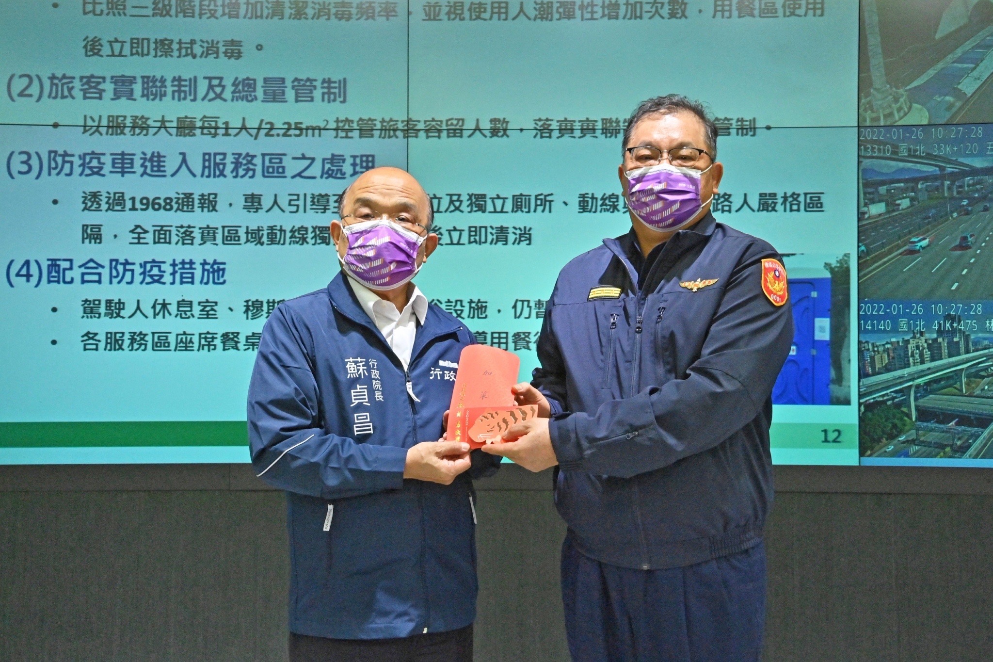 地點:高公局北區交控中心2樓控制室(新北市泰山區黎明里半山雅70-4號)防疫考量,本行程採「共訊」方式辦理,已協調SNG聯誼會共訊,並由新傳處提供照片。配合防疫,媒體朋友請全程佩戴口罩並保持社交距離。