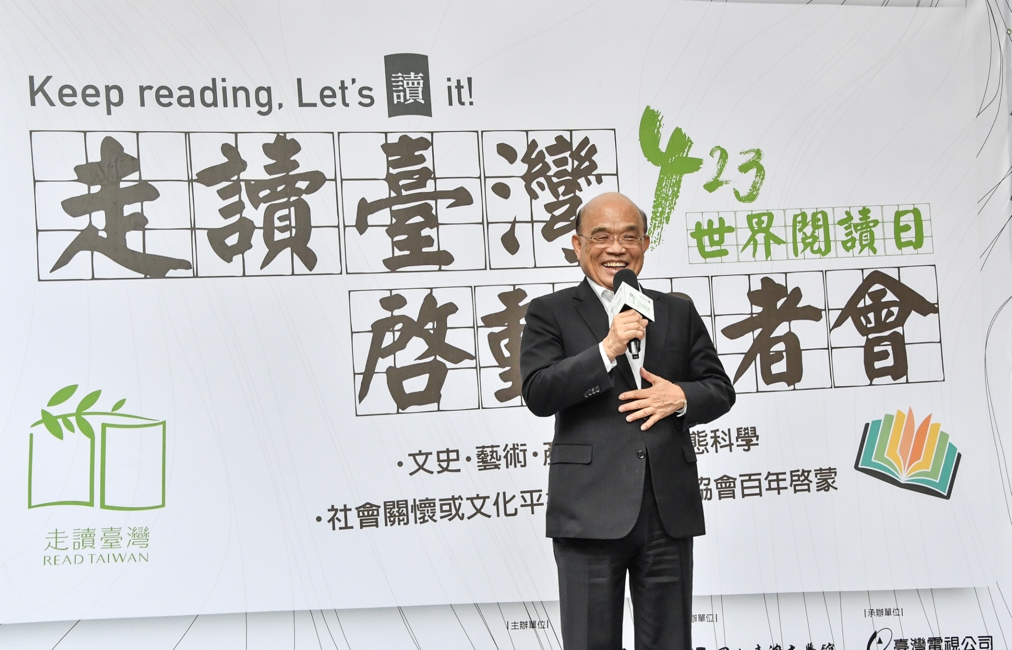 4月23日是「世界閱讀日」,行政院長蘇貞昌出席文化部「423世界閱讀日-走讀臺灣啟動記者會」活動時表示,透過閱讀及走讀等方式,不僅可了解很多事物,也可培養想像未來的能力,形塑觀念。院長感謝作家們願意持......【詳全文】