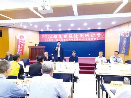 由行政院金馬聯合服務中心與金馬澎聯盟共同主辦、中華金門同鄉會協辦的「離島建設條例研討會」,5月11日在臺北市台大校友會館舉行,邀請金門、連江、澎湖等三縣政府代表、各界專家學者及金馬澎各個臺灣同鄉會共同參與,針對三離島未來發展需求及現行離島法制的修法方向進行深入而廣泛的討論。