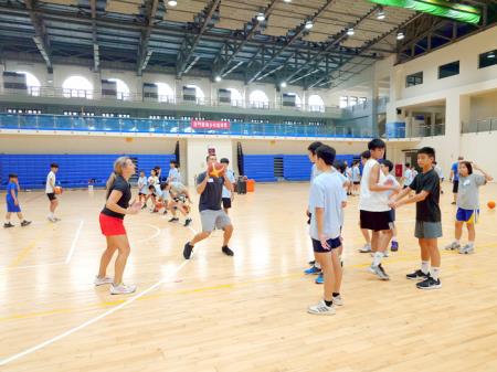 這場「金門暑期青少年籃球夏令營」活動,主辦單位的中華金福社教協會特別邀請到目前在台灣任教的四位美籍教練,以及四位本國籍的助教飛抵金門,共同指導地區的國小至高中階段的學員,共計約四十位學生報名參加,活動現場相當熱絡,教練與學員之間的互動極為融洽。