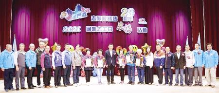 今年適逢志願服務法訂頒實施20週年,縣府辦理慶祝及表揚活動,楊鎮浯縣長特別在活動開始前抵達社福館,在社會處長董燊等人的陪同下,步入會場與在場志工揮手致意,並與副縣長李增財等貴賓頒獎表揚並祝賀259位績優志工、5隊績優志願服務團隊,並為4支新成立的志工隊授旗。