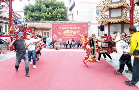 為保存並傳承國家重要民俗「金門迎城隍」,浯島城隍廟昨(13)日下午在廟埕及周邊廣場舉辦「浯島藝陣‧護境薪傳—迎城隍藝陣傳承成果展演暨體驗活動」。活動集結藝陣展演、文化導覽及互動體驗,完整呈現迎城隍藝陣傳習計畫的成果,吸引大批鄉親及親子家庭共襄盛舉,現場氣氛熱絡,充分展現金門傳統信仰文化的深厚底蘊與世代傳承活力。