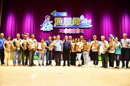 金門地區慶祝漁民節表揚大會活動於昨天上午九時起展開,漁業署科長謝勝雄、全國漁會專員林奇恩、縣府參議呂清福、農會理事長-議員許玉昭、行政院金馬聯合服務中心執行長吳增允、縣府建設處長黃儒新、金湖鎮長陳文顧、立法委員陳玉珍辦公室主任陳向鑫等貴賓與會觀禮,與漁民朋友一起歡慶漁民節。