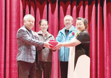 金門縣工業會近日舉行「第4屆理事長交接、理監事就職典禮暨傑出企業表揚聯歡晚會」,由縣府建設處長張瑞心頒發新任理事長張莉當選證書,原任理事長薛承琛在張瑞心處長及常務監事董水輪監交下,交接印信給新任理事長張莉。