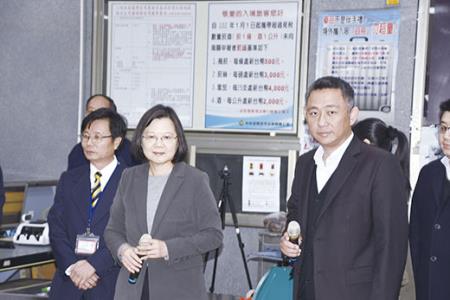 蔡總統是於昨日上午抵金,在金門縣長楊鎮浯、金門航站主任洪念慈及農委會金門檢疫站主任陳炳財全程陪同介紹下,總統先後視察水頭碼頭、後豐漁港執檢站及金門航空站,在水頭旅客服務中心,她也聽取高雄分局簡報防範非洲豬瘟強化措施,隨後並巡視小三通通關流程及CIQS相關單位作業情況。