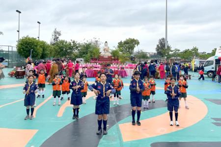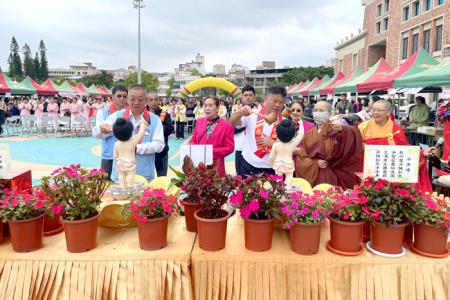 為慶祝2025年國定佛誕節暨母親節,佛光山金蓮淨苑、金門佛光童軍團及佛光會中華總會金門各分會於昨(26)日在金城鎮體育館後側盛大舉辦「佛誕節暨母親節浴佛祈福園遊會」,透過紀念佛陀誕辰,並連結母親節,傳遞慈悲、智慧與感恩的精神,活動吸引近上千名民眾熱情參與,現場莊嚴殊勝、法喜充滿,為金門地區帶來一場結合宗教文化與溫馨孝親意義的盛會。