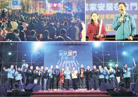 他說:「這場活動是我們向全世界展示金門的文化自信與創意實力,希望透過這場晚會提升金門的知名度,吸引更多旅客前來,進一步推動地方觀光與文化發展。」陳縣長回顧自己的從政經歷,向金門鄉親表達感謝:「從政以來,感謝鄉親給我30年的時間。如果一件事可以堅持30年,初心不變、始終如一,就能做得更好。辦活動很辛苦,但每一場成功的活動都離不開大家的齊心協力。」他特別感謝妻子許梨羡的支持,稱她為自己最堅強的後盾:「她讓我能全心投入公務,希望我們的努力能讓金門鄉親過得更好。」他也向活動的籌辦單位和參與人員表達敬意:「感謝文化局舉辦這麼有意義的活動,也感謝警察局的同仁在現場維護交通與秩序。此外,跨年晚會能在五個鄉鎮輪流舉辦,離不開各鄉鎮長的努力與配合。」陳縣長最後透露,2026年的跨年晚會將移師金沙鎮舉辦,誠摯邀請鄉親與旅客再度共襄盛舉,為金門的未來創造更多精彩篇章。
