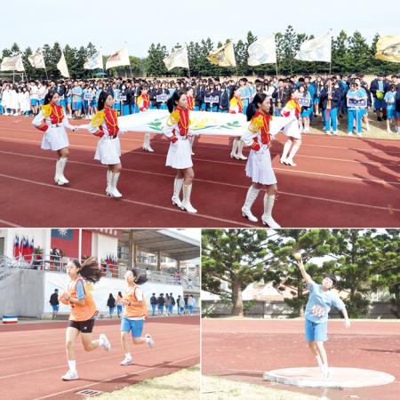 校運會開幕典禮結束後,隨即進行教職員工木球競賽,而各項比賽亦在運動場上陸續展開,昨首日進行跳高、鉛球、跳遠、鐵餅的田賽決賽,以及四百公尺接力、三千公尺等徑賽決賽,今日仍有各年級的跳遠、跳高、鐵餅、鉛球、一百公尺、四百公尺、一千五百公尺、四百公尺接力等決賽,以及壓軸的大隊接力,預計於下午三時起舉行頒獎閉幕。昨日縣警局少年警察隊、金城分局偵查隊亦派員到校執行校園安全維護勤務,讓活動舉辦更為順利圓滿。