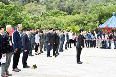 國防部舉辦古寧頭戰役勝利75週年紀念活動追思祭悼典禮,於昨日上午9時30分起,在太武山忠烈殿以及太武公墓前進行,由總統賴清德擔任主祭,國安會秘書長吳釗燮、國防部長顧立雄、行政院金馬聯合服務中心執行長吳增允、縣長陳福海、副縣長李文良、縣議會議長洪允典、立法委員陳玉珍服務處主任林孫全、縣府一級單位主管以及地方鄉鎮首長、多位參戰老兵共同陪祭,向國軍先烈上香、獻花、鞠躬,表達思悼之情,現場氣氛莊嚴肅穆。