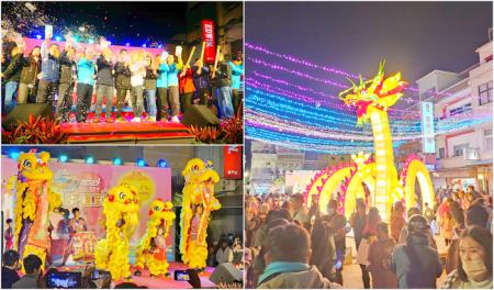 二○二四金門龍年元宵燈節於昨(24)日晚間,由副縣長李文良等人為主燈啟動點燈儀式,今年在金城後浦小鎮多處規劃造型花燈,讓民眾在暢遊小鎮時,可以發現以龍為造型的花燈,也吸引民眾爭相打卡拍照。