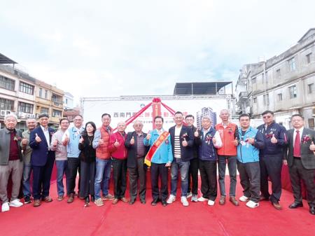 由金門縣政府主導的「金門縣金城西南門里公所暨周邊地區公辦都更案」,昨(30)日上午十時舉行興工動土典禮,由縣長陳福海主持,副縣長李文良、行政院金馬聯合服務中心執行長吳增允、縣議員洪成發、陳泱瑚、董森堡、王國代、前縣長楊鎮浯、縣議會秘書長王垣坤、內政部國土管理署都市更新建設組科長謝志鴻、立委陳玉珍服務處主任林孫全、金城鎮長李誠智、金城鎮代會主席郭永隆、西門里長楊雨川、南門里長鄭易岳、金日新營造有限公司董事長莊添發、吳非士建築師、永豐銀行北區不動產中心協理陳志銘,以及縣府團隊、住戶所有權人等到場參加,共同見證金門老城區更新推動的重要里程碑。