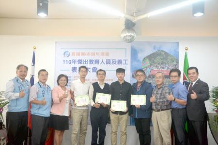 縣府秘書長陳朝金應邀頒獎表揚獲得傑出教育人員獎,黃香梅(榮獲全國教育大愛菁師獎)。林佳承、黃志豪、宋洋孝、孫孝義、陳小蘋、黃威銘、趙澤恩、蔡幼元、張桂芳、陳欣蘭。中等學校教育服務獎:李衛脩(代表至劍潭參加全國表揚)、吳振堂、張原魁、黃文華、楊弘安。社會團務義務工作同志服務獎:吳惠民(代表至劍潭參加全國表揚)、洪子惠。獲頒感謝狀單位和個人有:聰泉建材有限公司、馬家麵線有限公司、宏玻陶瓷股份有限公司、金寧中小學、正義國小、金門大學蔣光明教授、國立金門農工職校、國立金門高中。