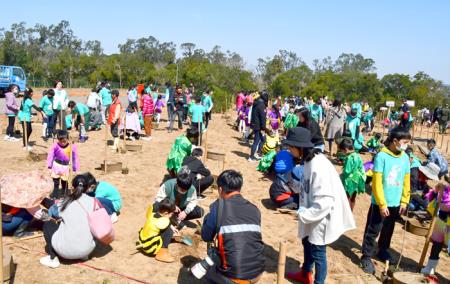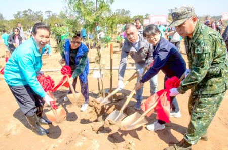 金門植樹節活動於昨天上午十時舉行,由縣長陳福海主持開幕儀式,金馬聯合服務中心執行長楊上德、立委陳玉珍服務處主任董志謀、金防部指揮官李定中、議員蔡其雍、楊育菡、縣府各局處首長、鄉鎮長及民意代表均出席植樹活動,地主開瑄國小及鄰近正義國小也派上百位學童,一同熱情參加此次的活動,並在開瑄國小幼兒園小朋友擔綱「護綠一天使」,表演啄木鳥舞蹈,為整個植樹節活動揭開序幕。