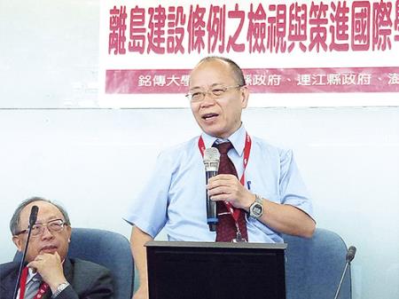 行政院金馬聯服中心邀集金門、連江、澎湖三縣政府、銘傳大學等單位,24日在台北市銘傳大學基河校區六樓國際會議廳舉辦「離島建設條例之檢視與策進國際學術研討會」。開幕式由金馬聯服中心執行長翁明志(福建省政府秘書長)主持。金門縣政府參議翁自保、澎湖副縣長林皆興、連江縣政府行政處長曾玉花、前立委曹爾忠、新北市政府法制局長黃怡騰、楊鎮浯立委辦公室主任黃子哲等與學者專家上百人與會。