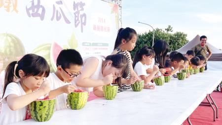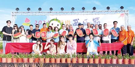 第13屆新前墩西瓜節暨社區26週年慶,昨(14)日下午熱鬧登場,在副縣長李文良、鎮長吳有家偕與會貴賓聯袂「開瓜」下,民眾大排長龍參與線上線下活動,戰技闖關、吃西瓜、挖西瓜比賽,以及海廢藝術裝置「瓜瓞綿延(國語)雨傘情(台語)」、「西瓜許願樹」拍照打卡等,並品嚐西瓜消暑氣,欣賞藝人演出、互動或索取簽名等,共度炎夏美好時光。