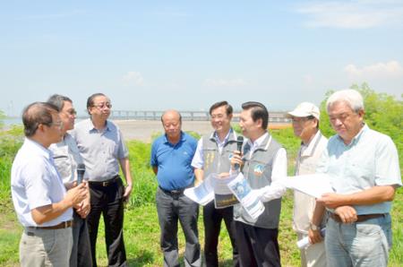 在工務所會議室聽取簡報後,陳福海等人也在工務所外空地遠眺大橋。他重申,年底絕對沒有「落後」這兩個字。
