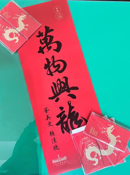為迎接民國113年「龍」年的到來,總統府特別製作春聯、紅包袋,傳達總統、副總統的新春祝福,總統府委請行政院金馬聯合服務中心代為發送春聯及紅包袋,祝福各界在新的一年都能迎來朝氣、希望及豐盛的成果。