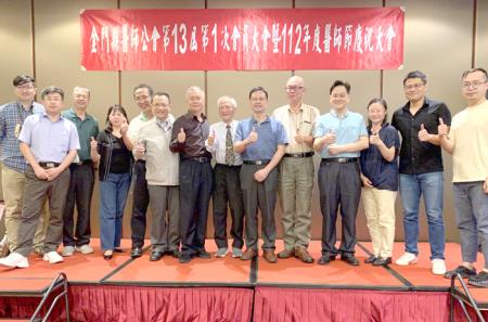 金門縣醫師公會於昨(5)日晚間於昇恆昌金湖大飯店舉行112年度醫師節慶祝活動暨第十三屆第一次會員大會,會中亦完成新任理監事選舉,理事長一職由董文雅膺任,常務理事為吳國斌、陳蕾如,常務監事為黃逸萍;其中,曾任第十一、十二屆金門縣醫師公會理事長的劉兆輝醫師,也特別自美返國參加此次大會。