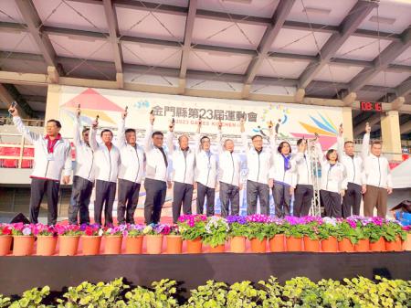 不只是跑友們早早就到現場換好裝備,為即將鳴槍開跑的比賽充分熱身準備,副縣長李文良、立法委員陳玉珍、行政院政務委員張景森、體育署副署長房瑞文、路跑協會理事長郭國雄、金門體育會理事長唐麗輝、臺北市體育局副局長蔡培林、議員楊育菡、議員蔡其雍、議員洪成發、金馬聯合服務中心執行長楊上德、金城鎮長李誠智、金寧鄉長楊忠俊、金城鎮民代表會主席郭永隆、金寧鄉民代表會主席黃文欣等貴賓也陸續到場為選手們加油打氣,不僅是台灣貴賓,離島友縣的連江縣副縣長陳冠人、澎湖縣教育處長林長安也跨海到金門共襄盛舉,並一同為比賽鳴槍。