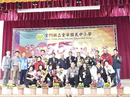 金寧中小學昨日歡慶55週年校慶,縣府祕書長陳朝金、行政院金馬聯合服務中心執行長翁明志、金寧鄉長楊忠俊等人到場祝賀。金寧中小學校長陳雅蘭感謝一直以來支持學校的地方各界,學生們才能在不同舞台上發光發熱,擁有亮眼的表現。