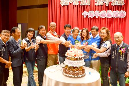 社團法人金門縣生命線協會「拾金歲月‧生命在線」歡慶成立十周年感恩活動於昨日假金湖飯店二樓宴會廳溫馨舉行,有來自台灣總會、金門縣各界貴賓及生命線會員、志工夥伴、歷年工作人員齊聚一堂,共同為金門生命線這個特別的日子獻上祝福。金門縣長陳福海亦到場致意和祝賀,他表示金門生命線在創會理事長李金振、榮譽理事長許雪芳、理事長謝觀昭帶領生命線團隊和志工為對金門這塊土地生命付出與奉獻,將全力協助讓金門生命線更茁壯成長。