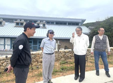 張景森一行會同張龍德、黃勢芳等首站前往馬管處行政中心、南竿北海南營區等處現場勘察,實地了解各空間現在用途並召開勘址會議,希望馬祖辦公室克服困難盡快成立,展開為馬祖鄉親服務工作。