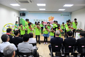 昨天的剪綵揭牌先由馬防部醒獅團表演,然後由各界貴賓共同剪綵、揭牌,並入內參觀,在三樓禮堂舉辦簡單隆重的開幕式,來自台灣、金門、馬祖愛心人士齊聚,更在中正國中小學小提琴社王筱君師生現場義演下,扶幼助貧滿溫情,募得6萬5千元服務經費。