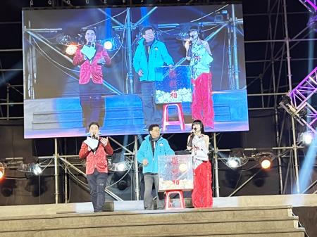副縣長李文良代表陳福海縣長向現場民眾祝賀,他提到,今年的跨年晚會相當熱鬧,現場除了有精采表演,還擺滿許多攤位,讓民眾又有吃又有拿,晚會中更有令人期待的摸彩橋段,到現場可以直接感受氣氛更不同,期待大家抱著滿滿的祝福,迎接新的2024年。