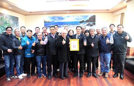 紀俊臣昨日下午在行政院金馬聯合服務中心副執行長謝春福、環資局長陳忠義、消防局長曹典鈺、產發處長林志豐、民政社會處長曾玉花、副處長李文鵬、北竿鄉長吳金平、介壽國中小家長會長楊清宇等多位銘傳在職專班歷屆學生陪同下拜會縣府,受到王忠銘熱烈歡迎。