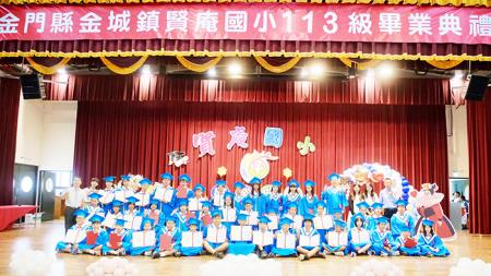 縣府教育處副處長洪蘋萱、金城鎮長李誠智、金城鎮代會主席郭永隆、鎮代表陳天成、倪于媃、蔡宗儒、中正國小校長蔡雪芳、金湖國小校長陳為信以及多年來熱心擔任交通導護志工的陳滄江、金城幼兒園家長會長吳伯揚、副會長李柏彥、葉杭、總幹事顏楷侖等各界來賓均到場送上祝福和期許,畢業生們帶著滿滿的感動,迎向下一階段的學習旅程。