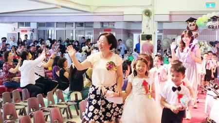 園長許釗琦恭喜畢業生在城幼三年的學習階段任務完成了,接下來要挑戰另外一個成長階段,這三年來從懵懵懂懂的臉龐到現在自信飛揚的笑容,畢業了!許釗琦希望小朋友可以把這個字記在心裡—「誠實勇敢、快樂成長」,盼他們誠實的對待別人,不要欺騙別人,做事得到別人的信任、別人的幫助也會得到一些好朋友的支持,同時勇敢的去發現新的事情、勇敢的去改變自己,這個世界很大,有很多新奇的事等著你們去探索和很多好玩的事等著你們玩耍。此外,禮貌是一個帶來快樂很好的因素,如果你可以對待別人有禮貌、對待自己有禮貌,那別人一定會一樣的對待你;另外,要懷著一顆感恩的心去感謝你的爸爸媽媽、感謝你的長輩、感謝你的家人對你的照顧、感謝老師對你的指導,以及感謝同伴跟你一起玩耍,常常有感謝心的小朋友,是可以促進快樂的因素。最重要的還是要好好的培養好的生活習慣,有好的生活習慣,好好吃、好好睡、好好的玩,你就可以健康快樂的成長。
