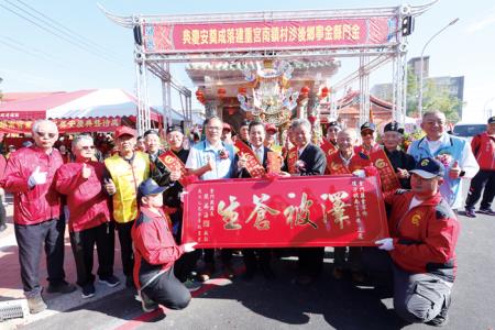 金寧鄉後沙鎮南宮重建落成奠安慶典,昨日登場,縣長陳福海、議會、五鄉鎮長、五鄉鎮代表會、金寧各村長等各界相繼前往獻匾致賀。村民忙著奠安慶典,旅居外地的鄉親也回鄉參與慶典的喜慶,社區洋溢著慶典的熱鬧氣氛。