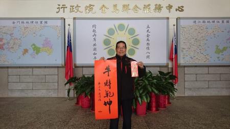 總統暨副總統春聯及紅包袋將自即日起,每週一至週五上午8時30分至17時,民眾可於上述時間至本中心索取。由於數量有限,每人一份,送完為止,有興趣索取的金門鄉親請把握機會。