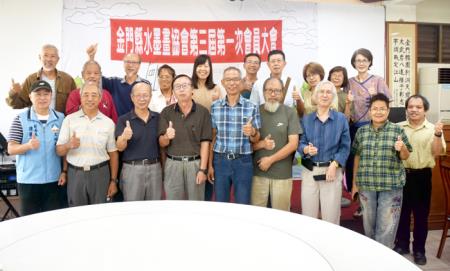 金門縣水墨畫協會昨日召開第三屆第一次會員大會並改選第三屆理監事,原任理事長楊誠國功成身退,洪明標孚眾望接任理事長,將持續帶領會員推廣地區水墨畫及美術文化交流,深耕藝術教育,參與地方藝文建設,展現多元豐富的新意境,提供美的藝術饗宴。