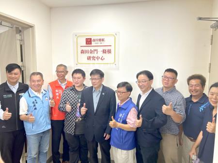 金門大學攜手森田藥粧集團在金大食品科學系成立「森田金門一條根研究中心」,昨日上午十時三十分舉行揭牌儀式,金門大學校長陳建民、金門縣政府參議陳祥麟、行政院金馬聯合服務中心執行長吳增允、立委陳玉珍辦公室主任董志謀、勞動部勞動力發展署北分署金門就業中心主任黃雨舜、金大學務長董燊、森田藥粧集團總經理周鴻佑、執行副總邵子豪以及食品科學系師生一同參加活動。