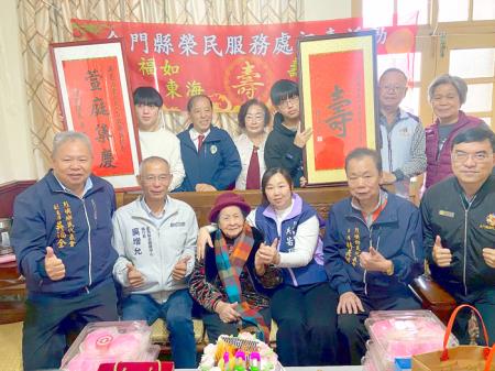 烈嶼鄉上庫百歲人瑞吳甚治喜迎壽誕,總統賴清德贈以「壽」中堂、行政院長卓榮泰贈以「萱庭集慶」中堂。金門縣榮民服務處、縣議員洪成發、行政院金馬聯合服務中心執行長吳增允、烈嶼鄉長洪若珊、鄉代會主席林長耕、副主席吳福全等各界也贈送禮品,溫馨祝壽,讓吳甚治和家人開心不已。