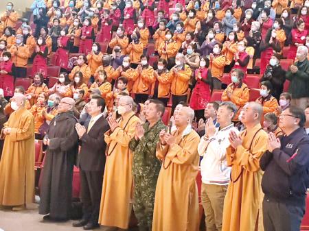 在歲末祝福點燈祈福中,陳福海縣長由縣府各級主管陪同參加,與金防部指揮官李定中及立法委員陳玉珍、縣議會副議長歐陽儀雄、縣議員周子傑、縣議員蔡水游、縣議員楊育菡、縣議會秘書長王垣坤、金防部政戰主任鄭傑元、行政院金馬聯合服務中心執行長楊上德、金湖鎮長陳文顧、金城鎮長李誠智、金沙鎮長吳有家、烈嶼鄉長洪若珊、金寧鄉長楊忠俊、金寧鄉民代表會主席黃文欣等地方軍政首長和民意代表及會員信眾,一起在佛前點燃一盞祈福燈,祈願社會安定、遠離刀兵劫,風調雨順、國泰民安、縣運昌隆!