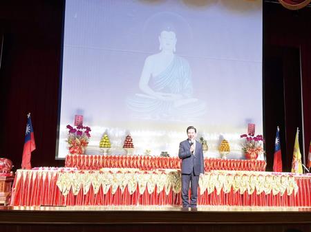 另外,陳縣長也感謝性海法師帶領金門縣佛教會在歲末舉辦這次有意義的祈福法會活動。他表示,透過佛菩薩的慈悲和民選首長及民意代表的認真、用心,他們能夠更好地為金門和鄉親們服務。最後,他祝福大家在新的一年「萬事如意、家庭幸福美滿!」