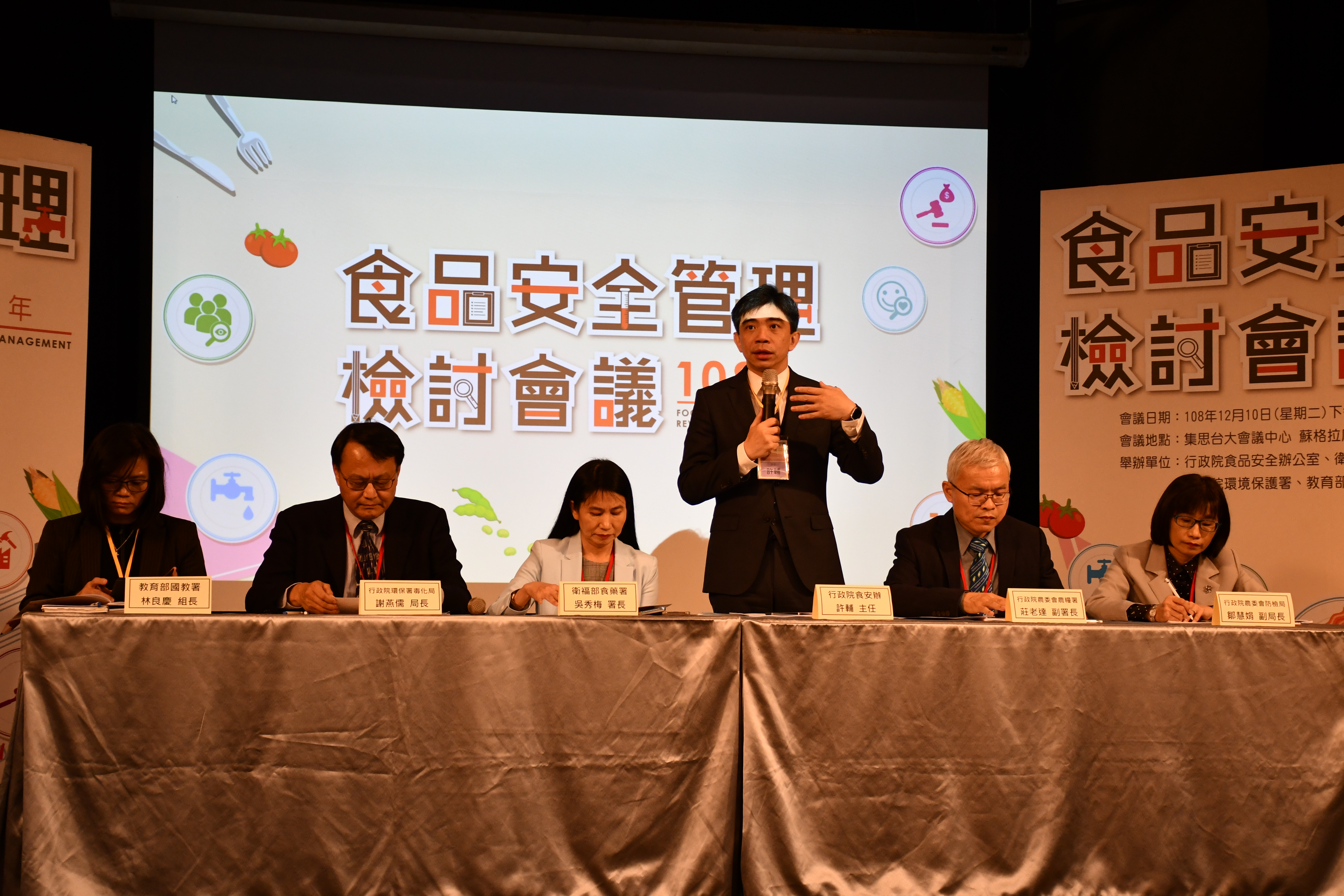 為檢視食安五環執行成效,精進我國食品安全管理機制,行政院食品安全辦公室於109年12月10日下午假集思臺大會議中心,邀集衛生福利部、行政院農業委員會(已於112年8月1日改制為農業部,下稱農業部)、教育部、行政院環境保護署(已於112年8月22日改制為環境部,下稱環境部)等食品安全相關部會及行政院食品安全會報委員、專家學者、立法委員、公民團體、產業團體等代表,辦理「108年食品安全管理檢討會議」,廣納多方建議,以精進食品安全管理各項措施。