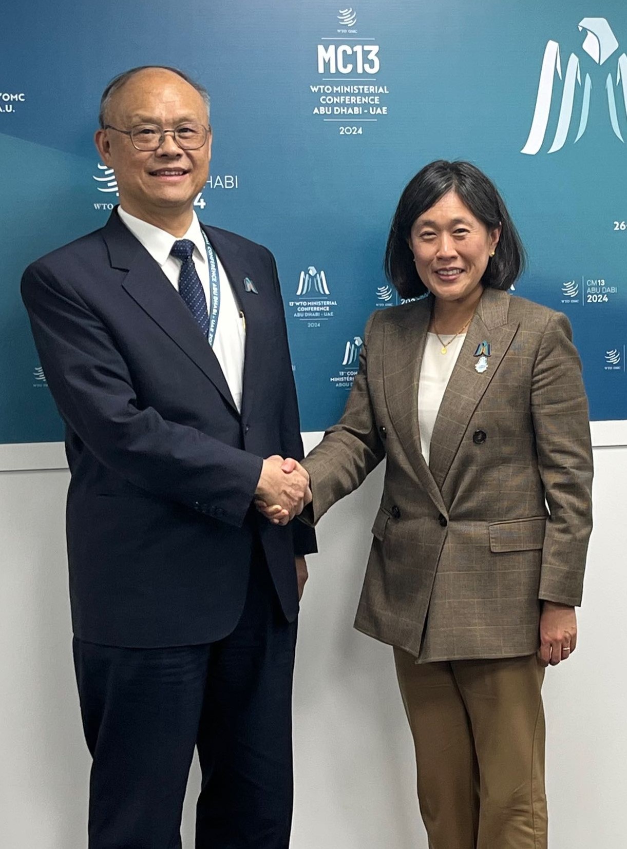 行政院政務委員鄧振中藉第13屆世界貿易組織(WTO)部長會議期間,會晤美國貿易代表戴琪。